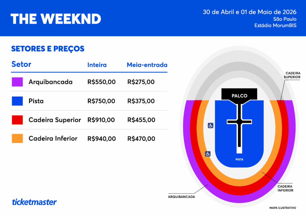 Com estrutura de estádio e setlist repleto de hits, os shows prometem repetir o impacto das últimas passagens do artista pelo país e consolidar mais um capítulo histórico na carreira de The Weeknd.